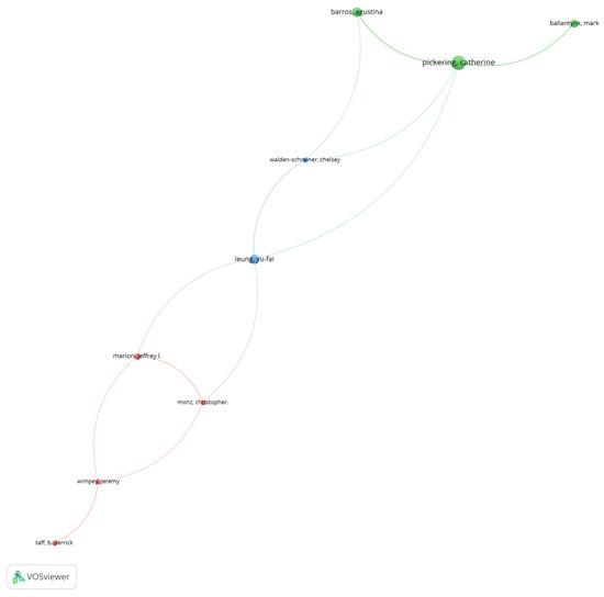 As shown in Table 5, Pickering, from Australia, is the most influential author with more than 1191 citations, followed by Leung from the USA, with H-indexes of 22 and 10, respectively. Between them, these two authors account for more than 16% of the total citations in hiking research.