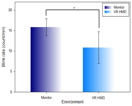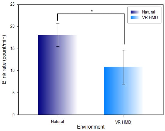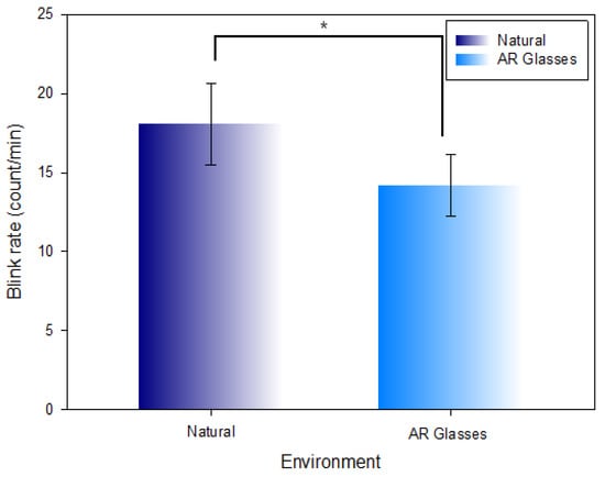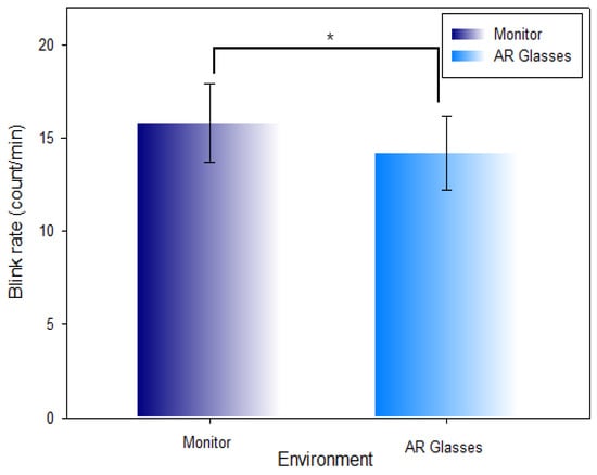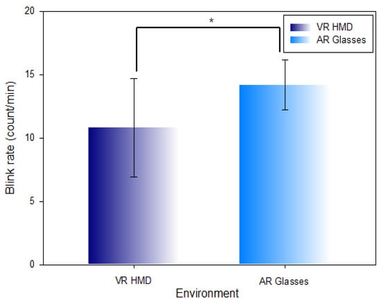 Kim, J.; Hwang, L.; Kwon, S.; Lee, S. Change in Blink Rate in the Metaverse VR HMD and AR Glasses Environment. Int. J. Environ. Res. Public Health 2022, 19, 8551. https://doi.org/10.3390/ijerph19148551
