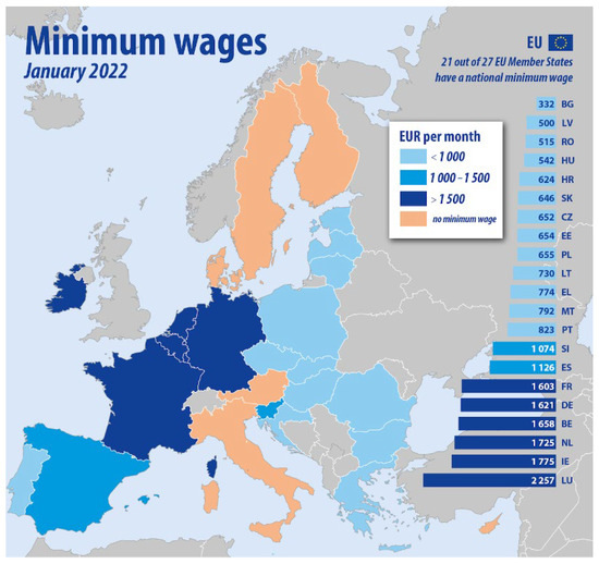 Minimum wage in EU. Source: European Commission, Eurostat [24].