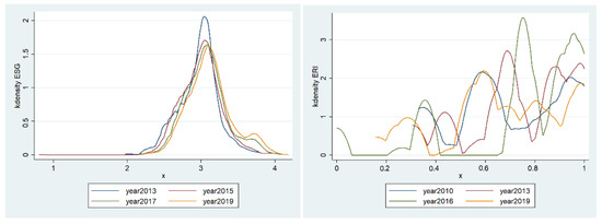 Kernel density chart of ESG performance and ERI.