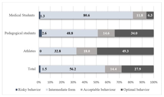 The frequency of occurrence of optimal and acceptable behavior significantly differed between the surveyed groups according to their future profession. Gender differences were found only in student-athletes (Table 9).