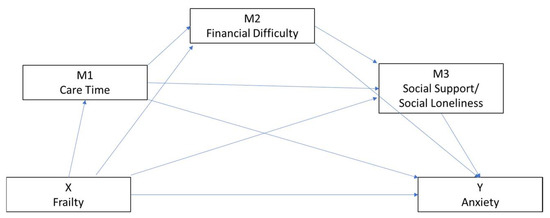 The parallel mediating effects of care time, financial difficulty, and social loneliness in a relationship between frailty and anxiety.