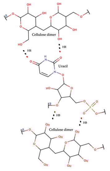 Representation of suggested hydrogen bond interactions between cellulose and RNA. HB, hydrogen bond.