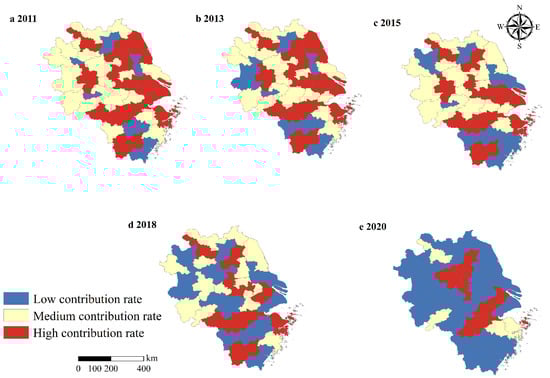 2.2.2. Spatio-Temporal Pattern of Contribution Rate of GASTP