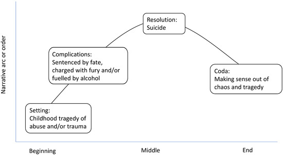 Despite the prevalence of suicide globally, individuals bereaved by suicide remain a group that has been understudied [6]. Even less is known about the bereaved whose loved ones are at risk of suicide who are not in mental health care. Insight from loved ones who experienced the lead-up to and aftermath of a death by suicide can offer recipes for change to our mental health systems [7]. Their stories of suicide can inform decision-making to develop better care models for individuals at risk of suicide. This paper presents a cognitive narrative approach to interpreting 12 narratives of suicide: how participants remember, make sense of and describe a tragic event like suicide [8,9]. In the following sections, we explore, interpret and analyse storytellers’ narratives and story arcs to understand their perspectives on their loved ones’ suicides and what we can learn from their lived experiences.