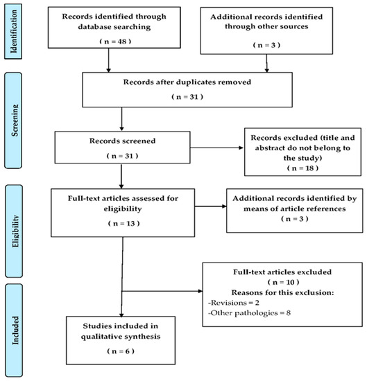 The selection process of this systematic review is shown in Figure 1, retrieving a total of 48 potentially relevant articles: two in PubMed, four in Cochrane Central Register for Controlled Trials, 18 in PEDro and 24 in Web of Science. A total of six studies were included in this systematic review.
