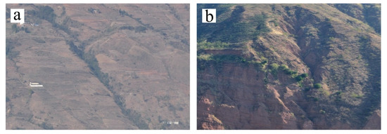 The existing gullies in Ningnan dry-hot valley can be divided into stable gullies and active gullies (Figure 11). The stable gullies have relatively stable environment through long-term gully erosion and further major changes are difficult, so the gully development is relatively stable [55,56]. In contrast, for active gullies, the gully head are clear and actively developed. In this paper, the two gullies are not distinguished, but they are discussed together. In the process of visual interpretation of remote sensing images and field investigations, high cluster erosion of gullies is mainly distributed in the mountainous areas with few people, whereas the areas with more frequent human activity are mostly areas with low cluster erosion. The results indicate that the topographic conditions are more important than that of human activities for gully development in mountains areas. Topographic conditions have a greater impact on gully erosion in the study area because people mainly live in flat areas, where the development of gully erosion is weak. The active gullies in Ningnan dry-hot valley are often affected more by human activities than the gullies are stable gullies. There are many active gullies in areas with frequent human activities, whereas there are many gullies in the mountainous area are stable gullies. The existing gullies in the mountainous area of Ningnan were mainly belong to the stable gullies.