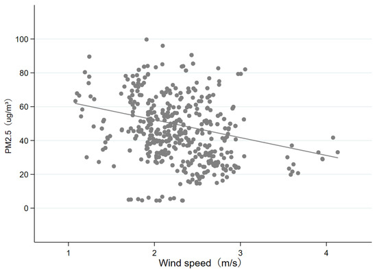 Wind speed and PM2.5 concentration. Note: This figure displays the relationship between annually average wind speed and the PM2.5 concentration of all sample cities.