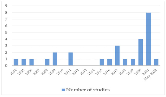 A total of 28 studies were included in this review. Out of the included studies, 13 were longitudinal prospective cohort studies, 12 cross-sectional studies, one was a retrospective cohort study and two were qualitative studies. The included studies were published between 2004 and 2022, of which 15 studies were published after 2018 (Figure 2). They originated from 11 countries including the United Kingdom, Croatia, France, Netherlands, Turkey, Germany, Spain, United States of America, Australia, Sri Lanka, and New Zealand.