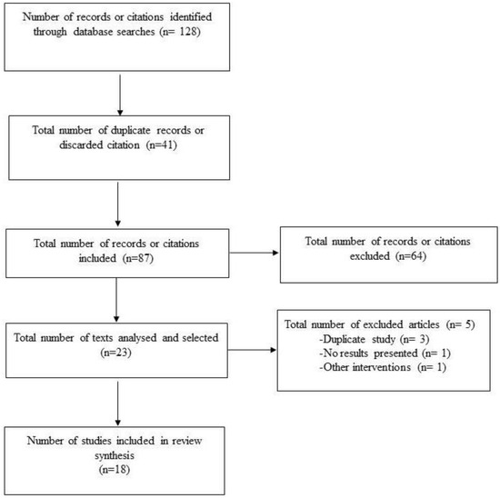 Figure 4 shows the flow chart used to represent the different phases of the selection procedure of the studies finally included in the review.