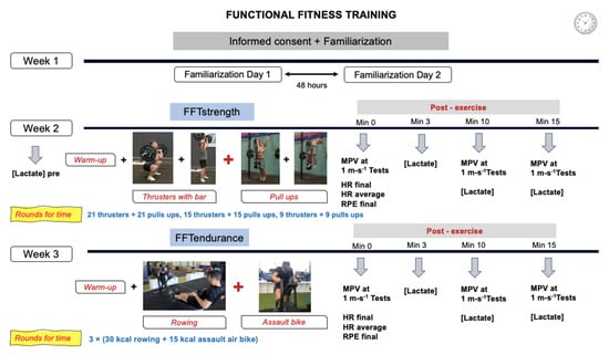 FFT = functional fitness training; MPV = Mean propulsive velocity; Min = minutes; HR = Heart rate; RPE = Rate of perceived exertion.