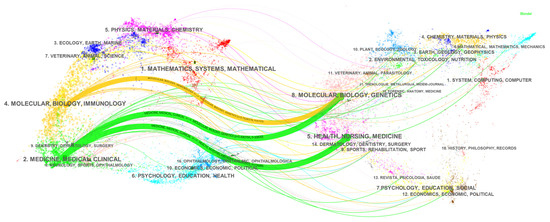 - Chen, C.M.; Leydesdorff, L. Patterns of Connections and Movements in Dual-Map Overlays: A New Method of Publication Portfolio Analysis. J. Assoc. Inf. Sci. Technol. 2014, 65, 334–351. [Google Scholar] [CrossRef]