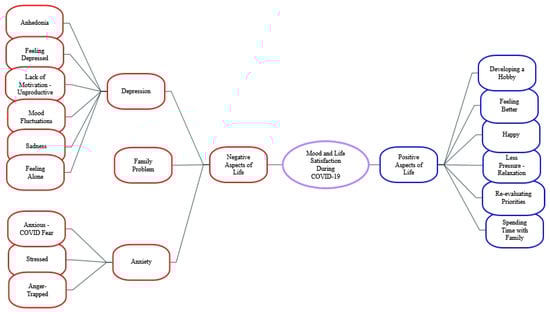 When asked about mood and life satisfaction during COVID-19 again two main themes of positive and negative aspects emerged (see Figure 6).