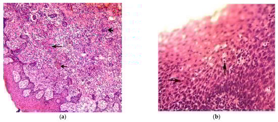 The materials for morphological studies were the samples of biopsy tissues excised from the mucous membrane in the area of immediate localization of the pathological process in all patients with HCV. According to the standard histological scheme, the pieces of the tissue were fixed in 10% neutral formalin, dehydrated and embedded in paraffin. A series of sections 4 µm in thickness were stained with hematoxylin–eosin and picrofuchsin by Van Gieson for a general assessment of the condition of the examined tissues. Histological micropreparations were studied with a ZEISS Primo Star trinocular microscope (ZEISS Microscopy, Jena, Germany) under 100-, 400- and 1000-times magnification. Microphotographs were taken with a ZEISS Axiocam ERc 5 s (Carl ZEISS Microscopy, Jena, Germany). All the features were examined in accordance with the international standards, WHO recommendations and recognized research methods [].