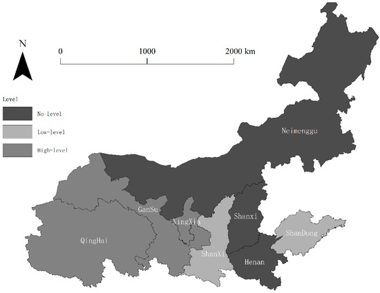 As seen in Table 6, the clustering results of the non-coordinated coupling degree between new urbanization and ecological carrying capacity in the Yellow River Basin during 2010–2017 are divided into three types. Type 1 is low-level non-coordinated coupling; only Shandong Province is of this type. Type 2 is antagonistic non-coordinated coupling; most provinces (autonomous regions) show this state, specifically Shanxi Province, Henan Province, Shaanxi Province, the Inner Mongolia Autonomous Region, and the Ningxia Hui Autonomous Region. Type 3 is the abrasive uncoordinated coupling state; the Gansu Province and Qinghai Province are in this state. On the whole, the non-coordinated coupling state of new urbanization and ecological carrying capacity of the provinces (autonomous regions) in the Yellow River Basin are better in the lower reaches of the Yellow River than in the middle and upper reaches. This study is similar to the findings of Liu et al. [41] and He et al. [42].
