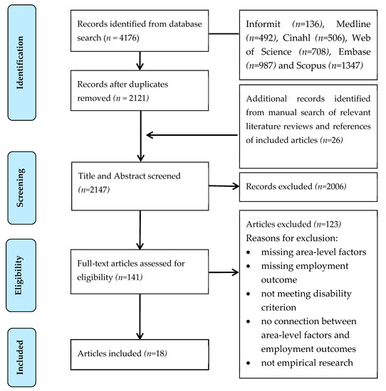 APA StyleFortune, N., Curryer, B., Badland, H., Smith-Merry, J., Devine, A., Stancliffe, R. J., Emerson, E., & Llewellyn, G. (2022). Do Area-Level Environmental Factors Influence Employment for People with Disability? A Scoping Review. International Journal of Environmental Research and Public Health, 19(15), 9082. https://doi.org/10.3390/ijerph19159082