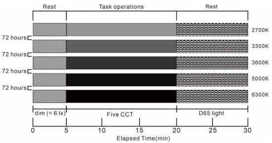 - Yasukouchi, A.; Yasukouchi, Y.; Ishibashi, K. Effects of color temperature of fluorescent lamps on body temperature regulation in a moderately cold environment. J. Physiol. Anthropol. Appl. Hum. Sci. 2000, 19, 125–134. [Google Scholar] [CrossRef] [Green Version]