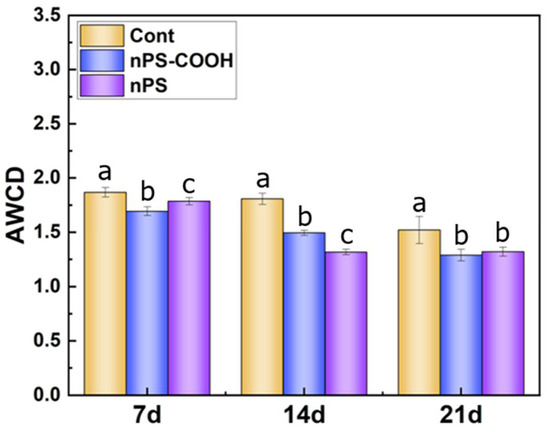 Liu, Y.; Li, W.; Tao, C.; Zhao, J.; Zhang, H.; Miao, L.; Pang, Y.; Hou, J. Distinct Responses of Biofilm Carbon Metabolism to Nanoplastics with Different Surface Modifications. Int. J. Environ. Res. Public Health 2022, 19, 9148. https://doi.org/10.3390/ijerph19159148