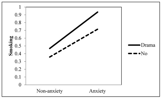 Interaction between anxiety and drama as a TV genre on smoking behavior.