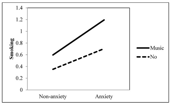 Interaction between anxiety and music as a TV genre on smoking behavior.