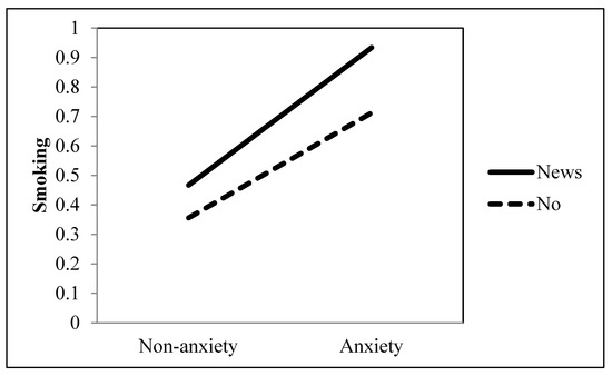 Finally, it is noteworthy that both news and health information programs moderate the positive relationship between anxiety and smoking behavior but in opposite directions. Specifically, although news viewing increases the association between anxiety and smoking, health-related information viewing decreases the relationship. The opposing findings between news and health information programs could be due to the content of each genre. Not surprisingly, health programs include informational content about health, which help viewers improve their knowledge and awareness of health risk [27]. On the other hand, news may have dysphoric content that is related to the stressful events in daily lives [7]. Our findings of the contradicting roles of two informational programs show the importance of differentiating informational television programs into news and health information programs.