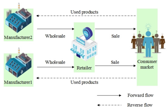 - Savaskan, R.C.; Van Wassenhove, L.N. Reverse Channel Design: The Case of Competing Retailers. Manag. Sci. 2006, 52, 1–14. [Google Scholar] [CrossRef] [Green Version]