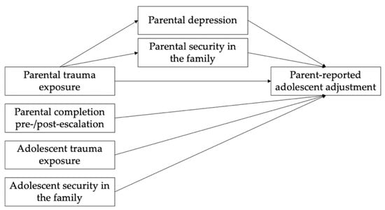 Although a substantial amount of literature exists on the relationship between adolescents and one of their parents, few studies have incorporated both mothers and fathers in the data collection process [,,]. However, understanding parents as having unique influences on their children is essential in order to effectively inform family-based mental health initiatives, especially in conflict-affected settings. Thus, the current study seeks to further explore the intergenerational implications of community violence exposure on the family system and young people’s development. This study will examine the associations between mothers’ and fathers’ traumatic experiences, maternal and paternal mental health, and maternal and paternal emotional security with parent-reported adolescent adjustment. Since the focus of the current study is on the intergenerational factors associated with youth adjustment, the adolescent self-report variables of trauma exposure and security in the family will serve primarily as control variables. This will promote understanding of how the experiences of mothers and fathers may independently contribute to their children’s adjustment outcomes.
