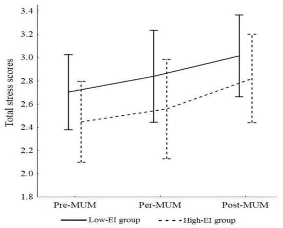 Total stress scores during MUM in high and low EI groups.