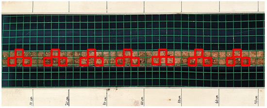 The photograph of the auger with a grid frame on top. The red squares represent the area set for RGB analysis.