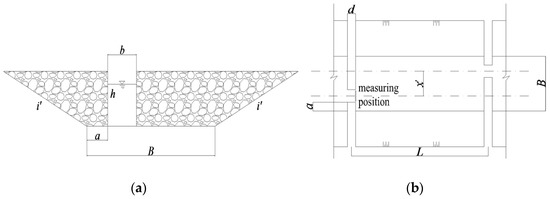 There are many factors that affect the flow conditions, based on the generalization above; the main ones are permeability ratio, offset ratio, bottom slope, side slope, bottom width and pool length. Within a certain range, changes in the side slope and bottom width have limited effect on the flow conditions [38,41]. So, the main influencing factors discussed in the study are permeability ratio , offset ratio R, bottom slope and pool length L. The permeability ratio of the control section