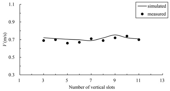 Comparison of simulated and measured maximum velocities among vertical slots.