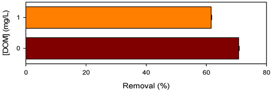 DOM is one of the most common background water constituents in natural water and often shows negative effects on pollutant abatement by AOPs [55]. The influence of DOM on CBZ removal by the Mn(III)/HSO3− process was shown in Figure 8. A total of 1.0 mg/L of DOM, the representative concentration in natural water, decreased CBZ removal by 13%. DOM could serve as the radical scavenger (Table S5), and resulted in the decrease of CBZ removal. In addition, the conversion of radicals by DOM might interrupt the chain propagation of HSO3− oxidation, and thus decrease the consumption of HSO3−. As shown in Figure S12, DOM retarded the oxidation of HSO3−. As mentioned above, that HSO3− also plays the role of radical scavenger, the retarded consumption of HSO3− in the presence of DOM might take some responsibility in decreasing CBZ removal by the Mn(III)/HSO3− process under the reaction condition of this study.