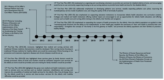 The Timeline of Older Population Care Policy Development on Human Resources Development in China.