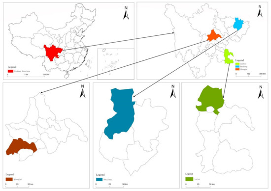 China is a large developing country that has experienced significant social reforms and ecological environment changes since the implementation of the Reform and Opening-up Policy in the late 1970s. Millions of rural households have been influenced by national policies and strategies and are more or less passive in adjusting their livelihood strategies in response to the radical socio-economic development [33]. In 2017, a rural revitalization strategy was proposed in the 19th Party Congress report with the purpose of solving the quandary about rural production and life as early as possible [34]. Sichuan Province, known as a large representative agricultural province in China, had a substantial but unevenly developed rural population of around 36.21 million in 2020 [35]. The urbanization rate in Sichuan was close to 60% in 2020, which was similar to the national level of 63.9%. The total grain output of Sichuan in 2020 was 35.27 million tonnes or 5.3% of the national output [36]. Sichuan Province is a large grain-producing, agricultural province and plays a key food security role in China; however, the province has extremely inefficient land use, a high degree of land abandonment, small-scale land operations, and incomplete land transfers [37]. However, as the rural households in Sichuan need to adjust their livelihood strategies related to land use, labor force, and employment transformation decisions, due to their typicality and representativeness, research on rural households and their land use decisions in Sichuan Province could be valuable in informing future rural policies.