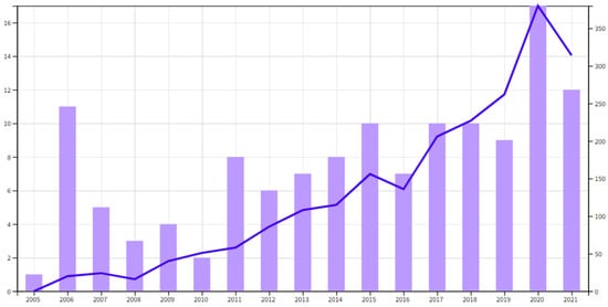 Papers published by year of publication according to the developed database.