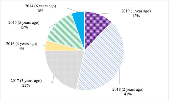 Figure 4 shows that most women became involved with the project in 2018 (41%), and the vast majority (75%) became involved from 2017–2019.