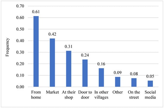Figure 5 shows where the women retailers sell the instant flours. The women sell the flours at various locations; however, most frequently, the women reported selling from their homes (61%) and at the market (42%). Some even sell the flours through social media, such as WhatsApp or Facebook (5%).