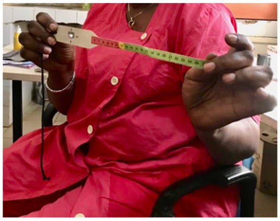 One of the clinics we visited was run by a woman nurse who also runs two other clinics in the poorest areas of Touba. She was the newly elected head of Touba’s 31 public health clinics and wanted all the local clinics to use the instant fortified flours because she believed that the flours had had very positive impacts on her patients. During our visit, she showed us a device (Figure 7) that goes around the arm of a child to assess their nutritional status. She said that children “sometimes go right from the red to the green [in a couple of months] because of the flours”. She explained that red is dangerous and that children show nutritional progress as they move to green. She attributed the nutritional progress, however quick or slow, to all of her child patients with their intake of the instant fortified flours. We also met with the head of a health mutual, which is the local equivalent of health insurance. The mutual does not sell or give away the flours, but it reimburses 80% of the purchase price for its members. The head of the health mutual views the instant fortified flours as part of the prevention and treatment of malnutrition.