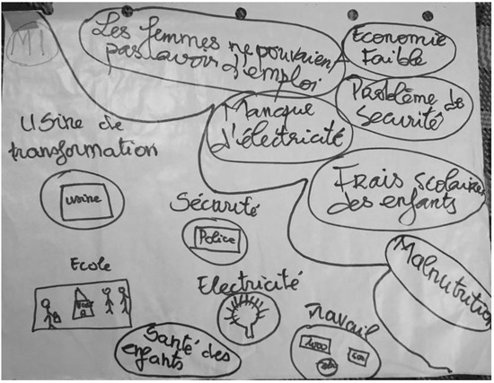 Figure 8 shows an example of a “Before and After” activity with one of the women processor groups. As a reminder, this activity focused on the changes that the participants perceived in their lives because of their involvement with the instant fortified flours project. An overwhelming response from the participants pointed to gaining independence, a new sense of community and camaraderie, and an increased knowledge of agriculture and other skills. The women processors and distributors said that, after joining their respective women’s groups, many positive changes occurred in their lives, households, and communities. Specifically, we can group these changes into three main categories: gender relations, household finances, and education. The participants told us they saw improved (attitudes toward) gender equality and women’s empowerment. They felt more respected by their husbands and community members because they were earning their own income and could help provide for their household needs. With this increase in income, women felt that their households’ financial, health, and living conditions improved. For example, some women perceived that their involvement in the project led to improved infrastructure, such as access to water in their communities. They reported an increased ability to pay for their medical needs, electricity, houses, and home furnishings. Additionally, they reported being able to invest more in education for their children, from elementary through to university, and for themselves by taking classes. They also learned various skills through project and business training.