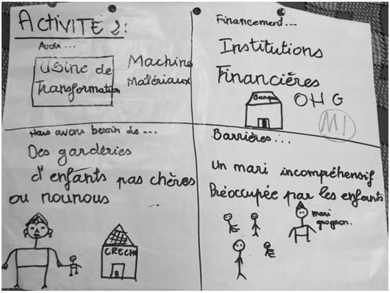 Particularly relevant to our study in Touba is the pronounced lack of opportunities for women to earn their own incomes, especially outside of the home, and to provide for their families. Women must receive permission from their husbands to leave their homes, and in Evers Rosander’s study, women “mentioned the problem of husbands refusing to allow them to work outside the home and women traders have faced particularly strong opposition,” thus limiting which opportunities women can take to improve their own and their families’ wellbeing [59] (p. 166). As previously noted, women’s empowerment is a gender-sensitive VCD goal to improve gender equality as well as to reduce poverty across households. In the Diourbel region, where our study site is located, 47.8% of the population is under the poverty line, and 16.2% of the children display symptoms of malnutrition [60]. In addition, households in this agricultural and pastoral region earn a median annual income of 580,000 CFA (~983 USD) [61].