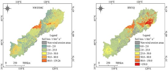 In RWEQ, the potential wind erosion of half a month was calculated, and the annual potential wind erosion was determined from the half-monthly potential wind erosion.
