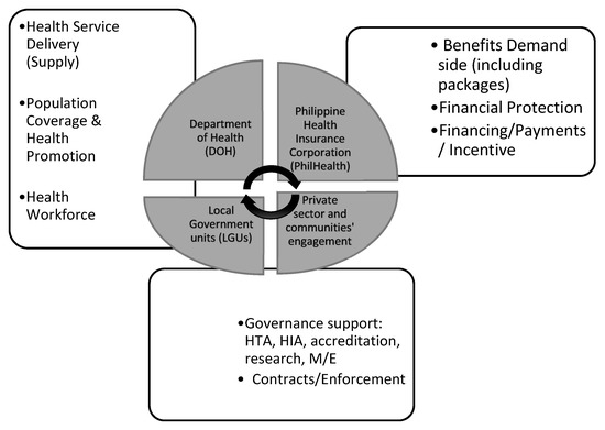 - An Act Instituting Universal Health Care for All Filipinos, Prescribing Reforms in the Health Care System, and Appropriating Funds Therefore. 2019. Available online: https://www.doh.gov.ph/sites/default/files/health_magazine/RANo11223_UHC.pdf (accessed on 9 August 2021).