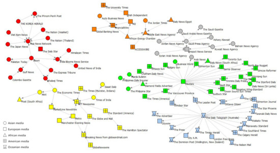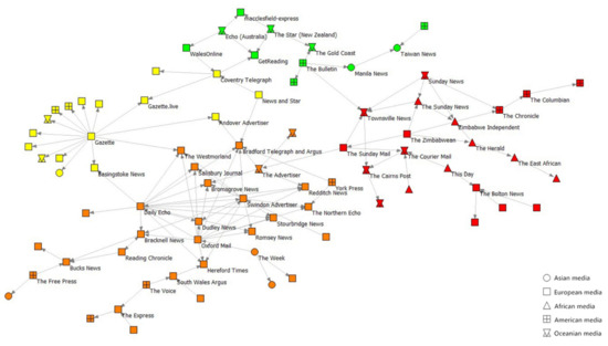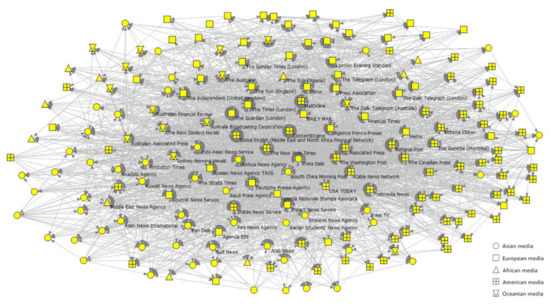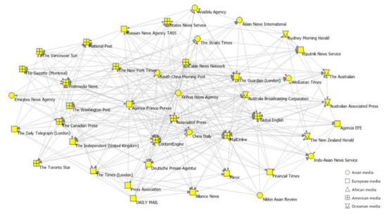 - Himelboim, I. The International Network Structure of News Media: An Analysis of Hyperlinks Usage in News Web sites. J. Broadcasting Electron. Media 2010, 54, 373–390. [Google Scholar] [CrossRef]