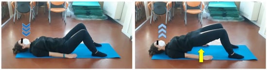 Workout load was progressively increased by changing exercise body position, starting from supine decubitus (Figure 4), then lateral decubitus (Figure 5), and finally performing them in quadruped (Figure 6) and orthostatic (Figure 7) positions.