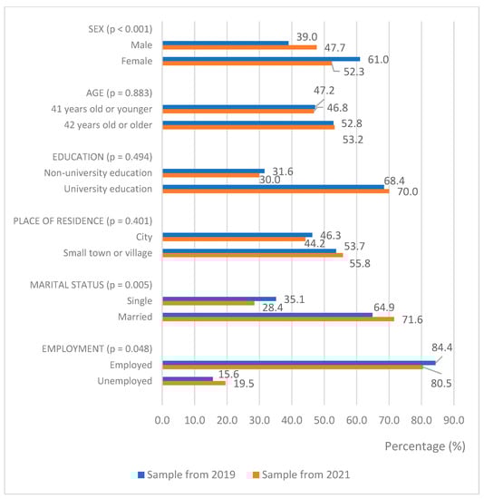 | Factor | Sample from 2019 | Sample from 2021 | p-Value | ||