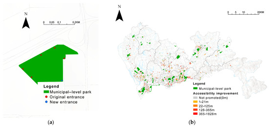 A programmer to enhance park accessibility: (a) added entrances and exits to the municipal park and (b) effect of the programmer.