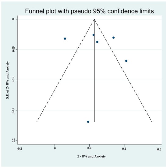 The funnel plot displaying the estimated pooled Fisher’s z-score in the association between binge-watching and anxiety.