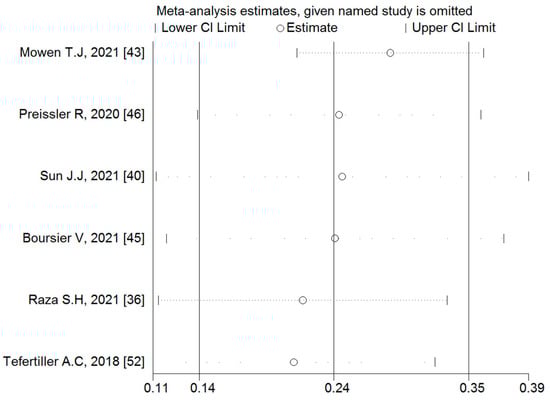 The probability of publication bias was assessed using funnel plots and Egger’s test []. The Jackknife method was used to assess the small study effects [].