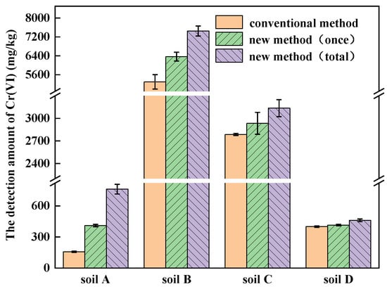 In summary, the amount of Cr(VI) in different soil samples detected by the new method can provide more accurate results, which is essential for the evaluation of Cr(VI) level in contaminated soil and remediation effect after treatment.