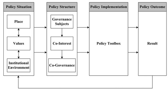 (2) Policy Structure: Policy structure refers to the relationship formed by the relevant policy subjects in the policy process, which reflects the power distribution pattern between the relevant policy subjects. Policy structure contains three principal concepts: governance subject, co-interest, and co-governance. The implementation of public policy depends on the interactive behavior of multiple subjects, which forms an open behavior network. Governance subjects can be divided into core governance subjects, endogenous governance subjects, and exogenous governance subjects. For example, it is most obvious in authoritarian countries such as China, where local governments are often the core governance subjects. The above three concepts are condensed into a feedback relationship, which is characterized by condensing co-interests, connecting different governance subjects, and then forming a pattern and atmosphere of co-governance.